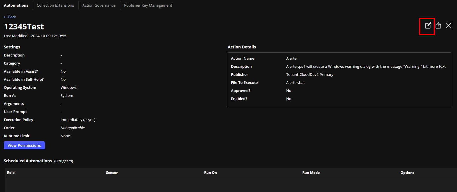 The Edit Automation window opens. In this view, you can edit the metadata of the selected automation.