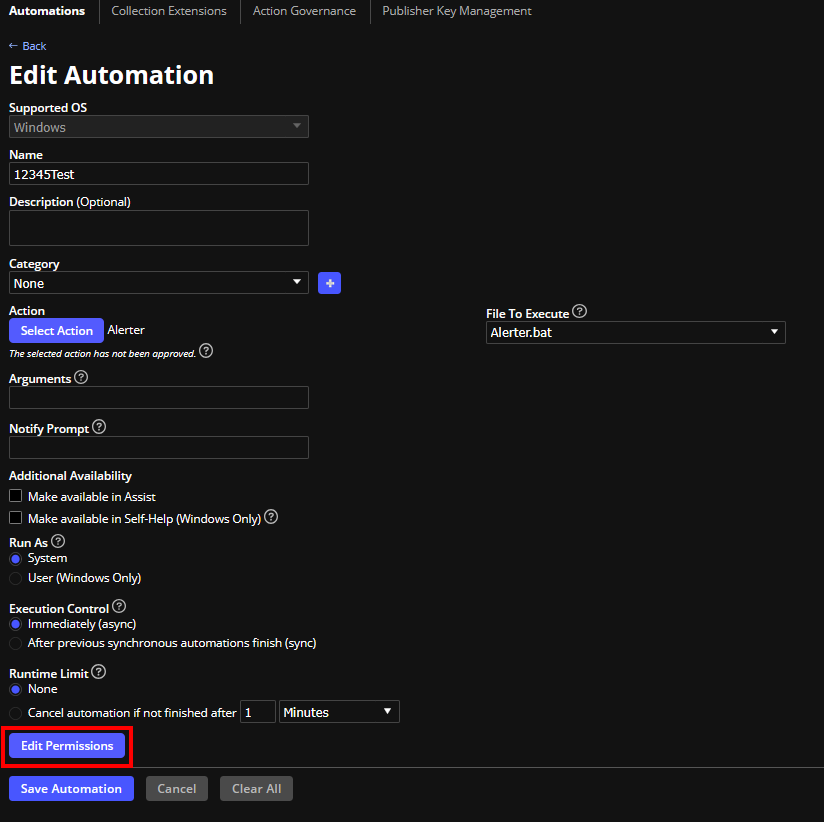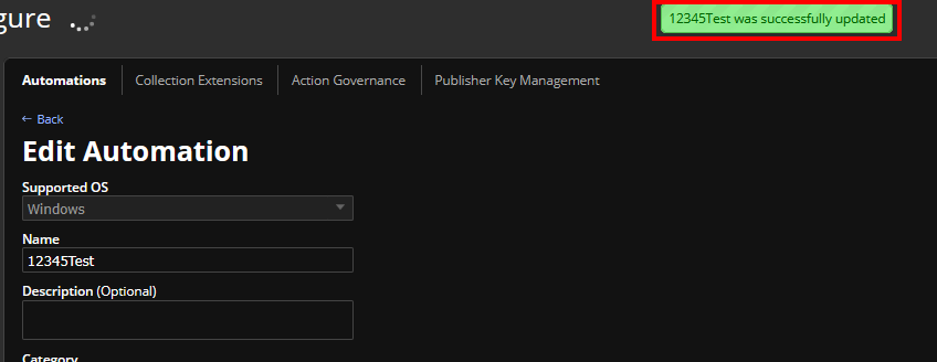 NOTE: For the Category field - if your desired category is not listed, it means no other automation currently uses this category. You will need to create it again by clicking the + button to the right of the Category drop-down.