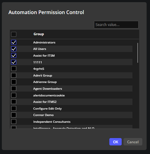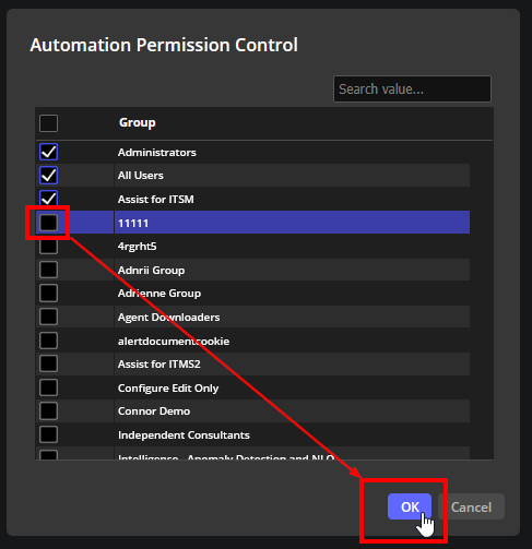 In the Automation Permission Control window check or uncheck the permissions you want to change.