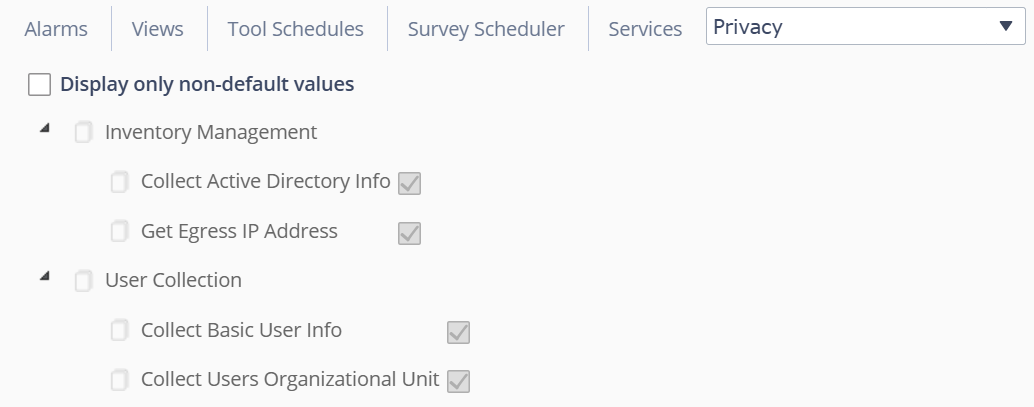Collect Users Organizational Unit: Collects the organizational unit of the user logged into the system. This information is retrieved from Active Directory. Clear this option to stop collecting this information.