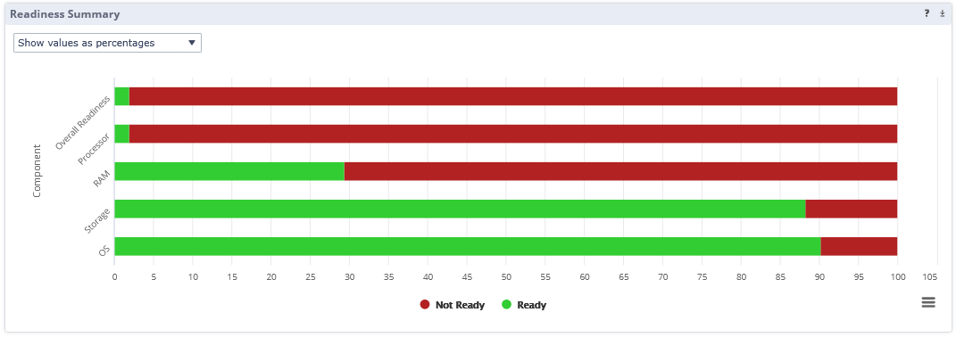 This pane shows a chart that visualizes the readiness of systems for specific components.