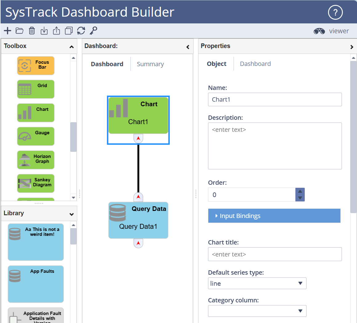 Connect the output port of the Query Data block to the input port of the Chart block.
