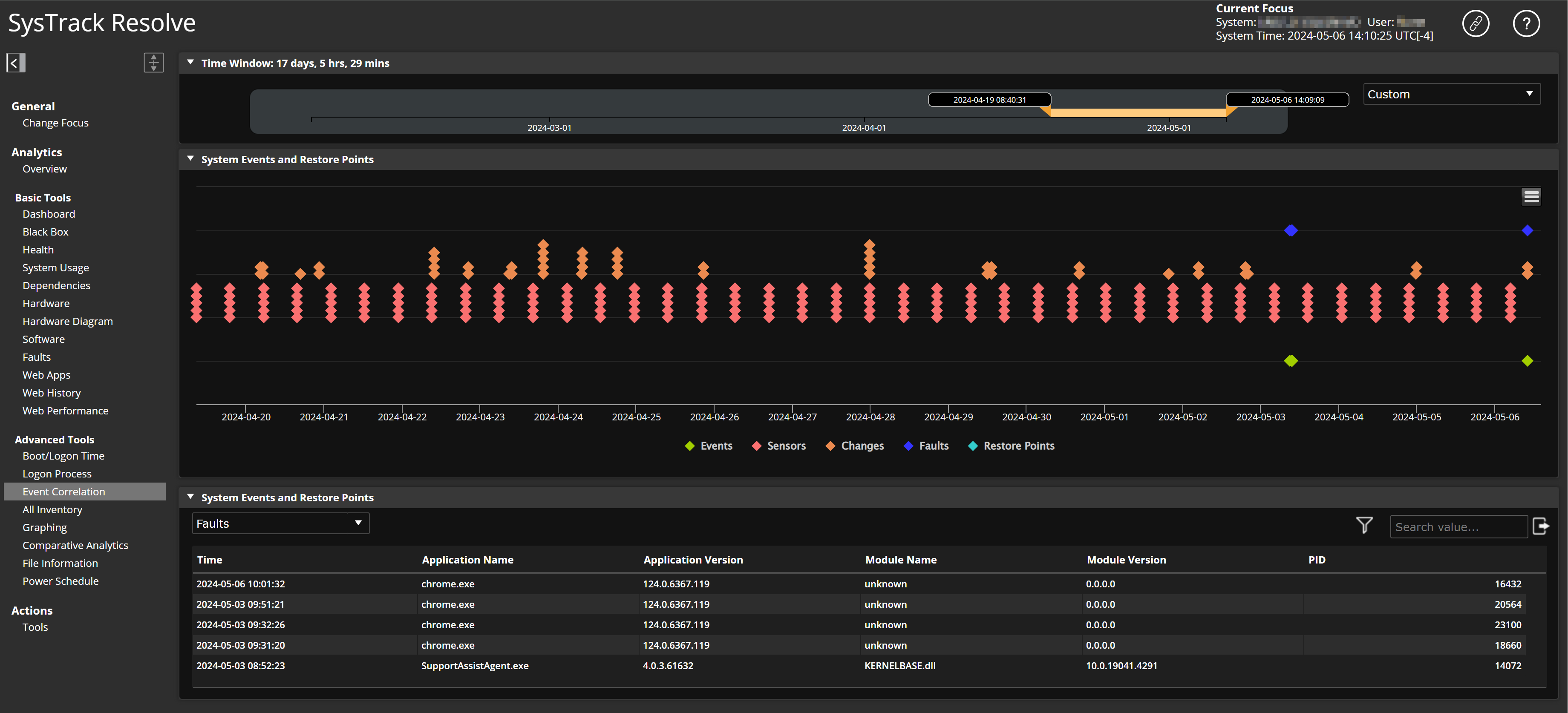 This tool overlays fault events and system alarms with system changes that occurred during the same specified time frame. Also, this tool has an option that enables you to roll the system back to a restore point before the issues occurred.