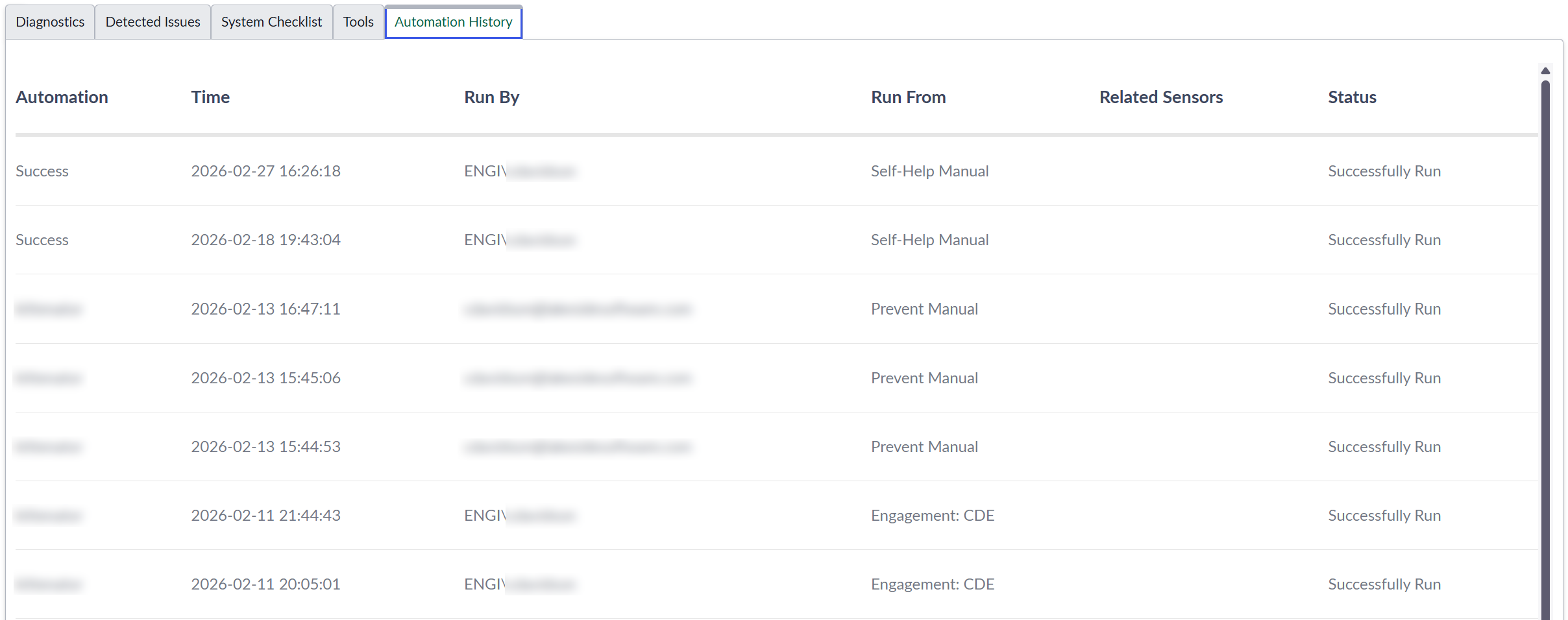 Automation History Tab