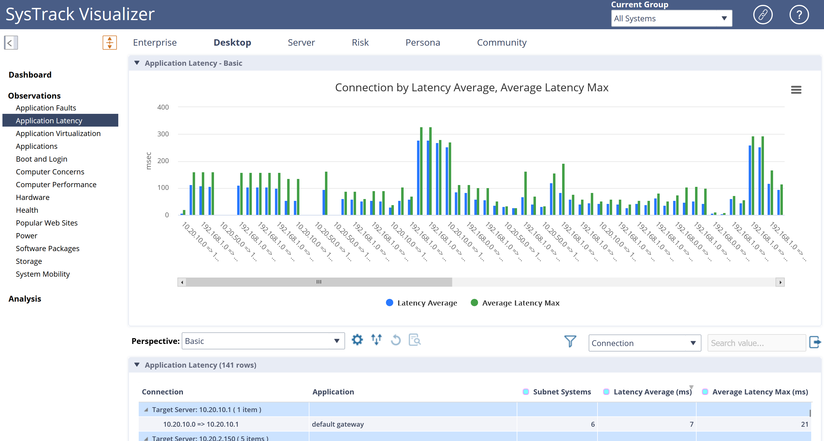 NOTE: The Application Latency data is calculated only for subnets with more than 5 systems to improve scalability and performance.