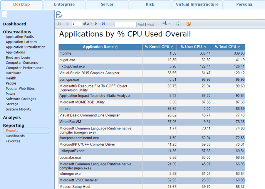 - select Reports from the SysTrack Visualizer Navigation pane. The Select Report dialog displays.